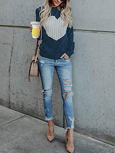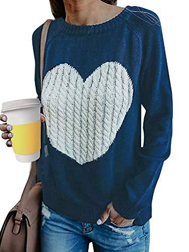 - Jerseys extragrandes para mujer, cuello redondo y manga larga con un lindo corazón, patrón único en forma de corazón, combina con un tejido de punto, lindo y encantador