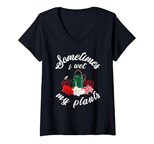 Mujer Yo moje mis plantas juego de palabras de jardinería riego ho Camiseta Cuello V