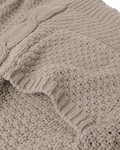 CNFIO Mujeres Cárdigans Chaqueta De Punto Jersey De Suelta Punto Frente Abierto con El Bolsillo (Caqui-Nueva, XXL)