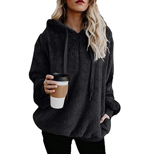 - Jacket Chaqueta de talla grande: este grueso abrigo con capucha está disponible en tallas grandes teniendo en cuenta que es holgado, manga larga con acabados de canalé, cuello con cremallera de 1/4, 2 bolsillos laterales para mantener las manos calientes, sudadera con capucha, perfecto para mujeres, damas y juniors