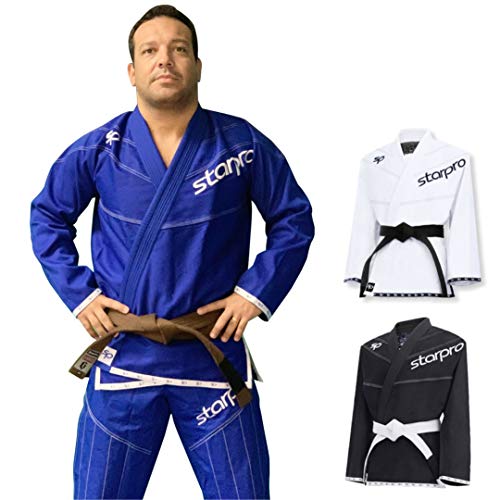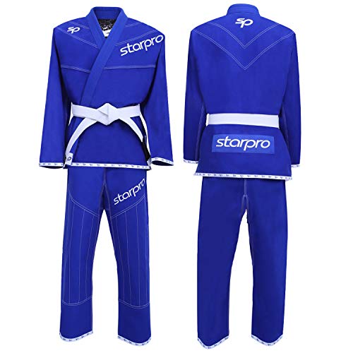 Starpro Kimono BJJ Gi de 450 gramos, mezcla de algodón potente, blanco y negro, de Preshrunk profesional, para entrenamiento y competición, para hombres y mujeres, A0 A1 A2 A3 A4 A5 azul A