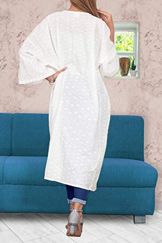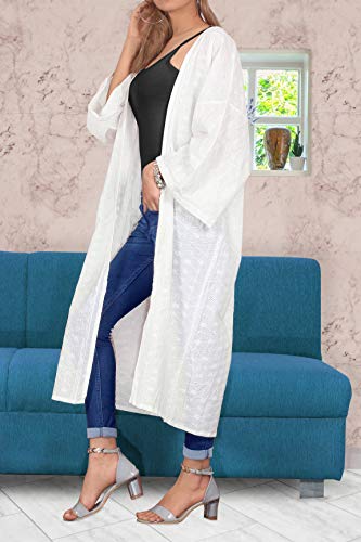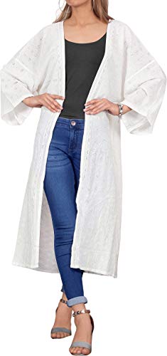 LA LEELA Largo De La De del Verano De Las Mujeres del Verano Que Cubre La Cubierta Superior De La Rebeca del sólida Kimono Llanura del MantóN De Algodón Ghosts Blanco_A424