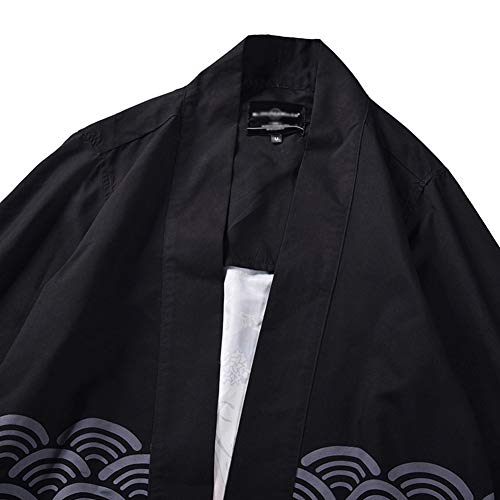 HAORUN Hombres Japonés Kimono Chaqueta Casual Cardigan Blanco Negro Tops Vintage Coat
