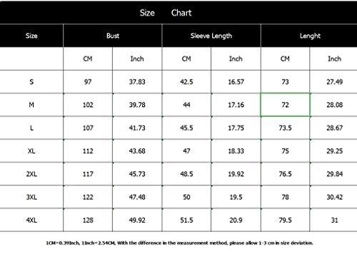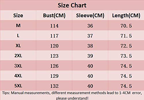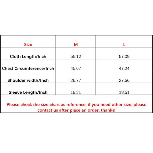 - Tamaño: L. Sea conveniente para la longitud de la ropa los 145cm / 57.09inch, longitud del hombro70cm / 27.56inch. Circunferencia del pecho 120 cm / 47.24 pulgadas, longitud de la manga 47 cm / 18.50 pulgadas. También tenemos el tamaño M. Si necesita otro servicio, póngase en contacto con nosotros y comunique el tamaño que necesita después de realizar un pedido.