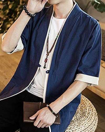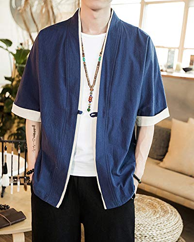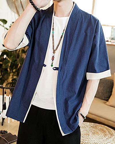 Shaoyao Hombres Cárdigan Chaqueta De Kimono Japonesa Chaqueta De Informal Chino (S, Armada)