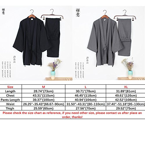 Trajes de Estilo japonés de los Hombres Traje de meditación de Traje de Pijamas de Kimono Fino-Azul Marino XL