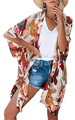 - Diseño elegante: estilo suelto y casual, cárdigan kimono de gasa abierto con mangas 3/4, tejidos exquisitos y cómodos y diseños florales, que pueden hacerte elegante y encantador, una multifunción imprescindible en primavera y verano. Capa informal.