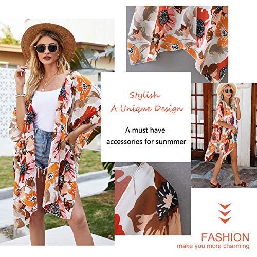 - Diseño elegante: El cárdigan de gasa floral tiene un diseño de estampado a la moda. Media manga, traje suelto. Suficiente largo para cubrir tus caderas.