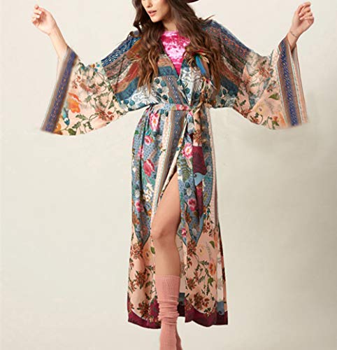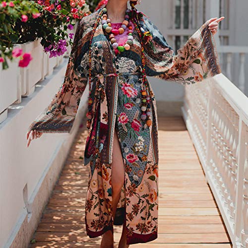 ECOMBOS - Kimono largo para mujer con estampado floral, para la playa, gasa o para el verano, estilo bohemio Multicolor-A. L