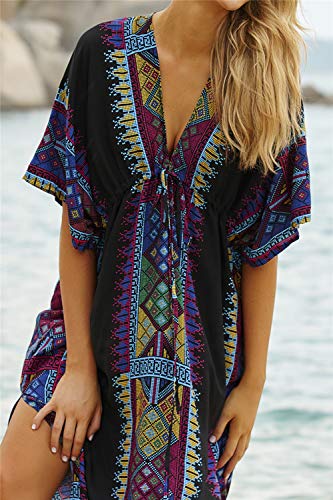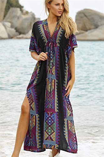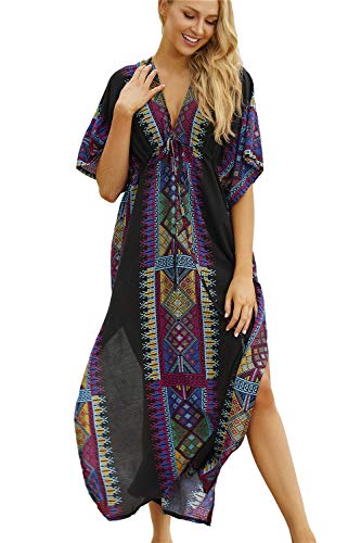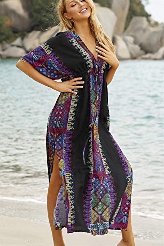 Tyidalin Kaftan Vestido Maxi Largo Playa Mujer Verano Estampado Camisolas y Pareos Bohemio Kimono Cover Ups (Color 14, Talla única)