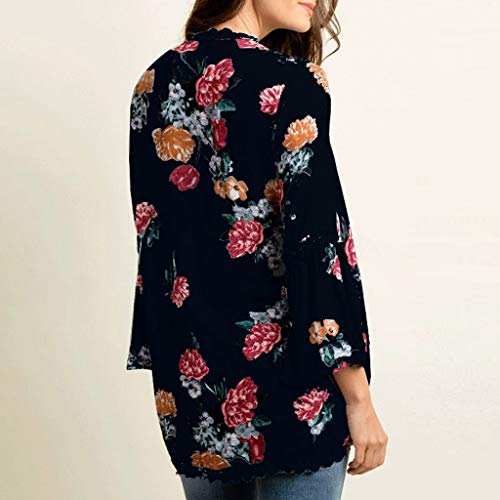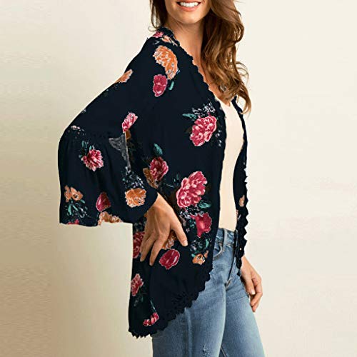 Aibrou Cárdigan Kimonos Mujer Camisolas y Pareos Pareo Playa,Cardigan Verano Manga 3/5 Tops Blusa Floral Suelta,Vacaciones Playa Chal,(Armada, S)