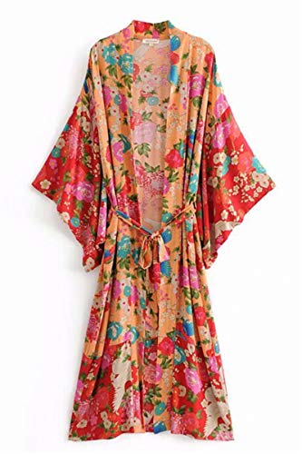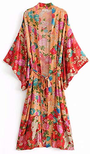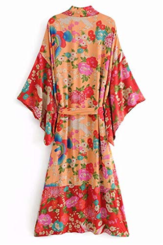 Mujeres Verano Kimono Cardigan Casual Ropa de Playa Pareos Retro Impreso Blusa Larga Tops Manga Corta (Talla única, Naranja)
