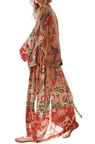 AiJump Chiffon Boho Kimono Vestido de Playa de Talla Grande Bikini Largo de Verano Cover Up para Mujer
