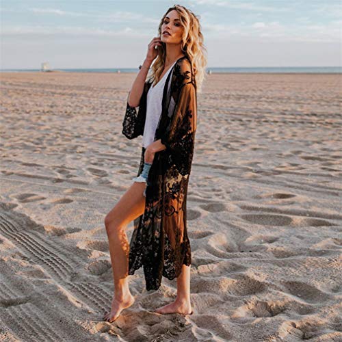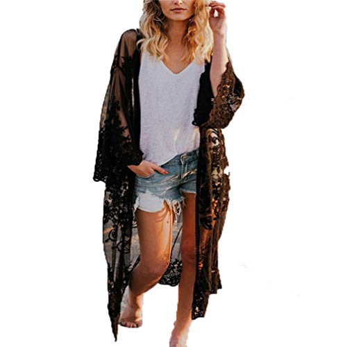 Mujer Encaje Cardigan Largos de la Playa Bohemia Mujer Primavera Verano Tallas Grandes Kimono Cárdigan Extragrande Wraps Tops Outerwear Jersey (A-Negro)