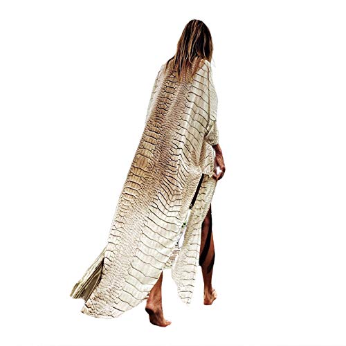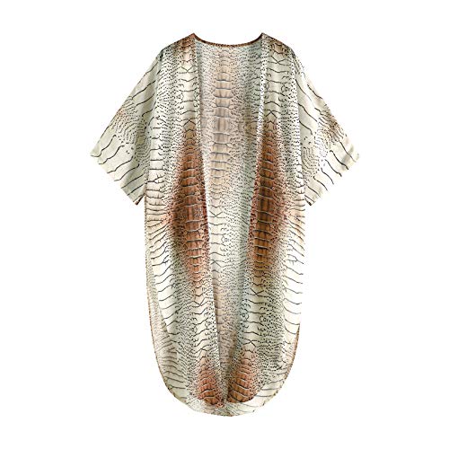 Pareo de Bikini para Mujer Cover Up para Playa Estampado Floral Cárdigan Largo Estilo Bohemio Bata Kimono Talla Grande de Mujer para Verano Vacaciones (Serpiente, S)