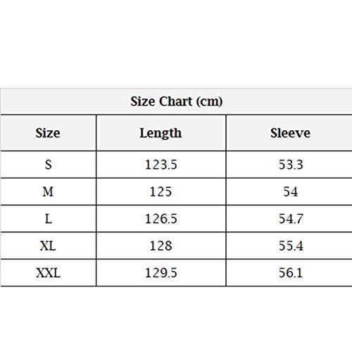- Tamaño ----- talla única. Longitud de la manga 16.5 '' (42 cm), longitud 36.6 '' (93 cm).