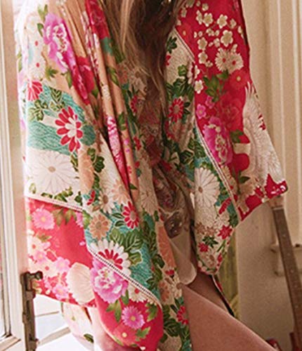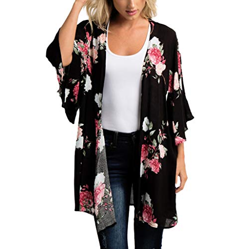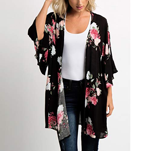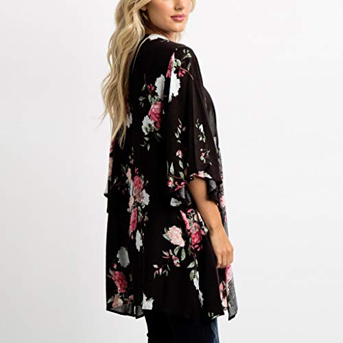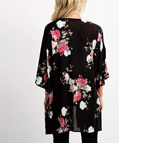 wyxhkj Kimono Cardigan Blusa, Camiseta Manga Media Gasa Imprimir Floral Playa Vacaciones Casual Cardigan Top Cover Up Blusa Ropa Abrigo para Mujer Verano (M)