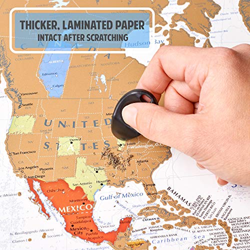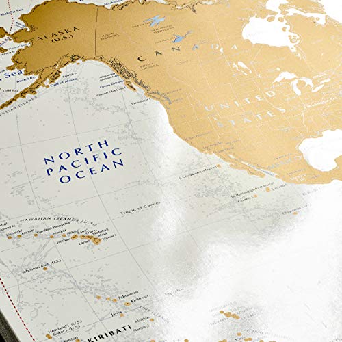 - ✔ PAPEL INTACTO DESPUÉS DEL RASCARLO - Hecho con papel laminado más grueso y material de lámina dorada de grado superior que es fácil de quitar con púa de guitarra sin dañar la superficie del mapa.