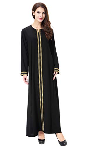 GladThink Mujer musulmán Kaftan Abaya Vestido de Cuello Redondo Maxi Oro M