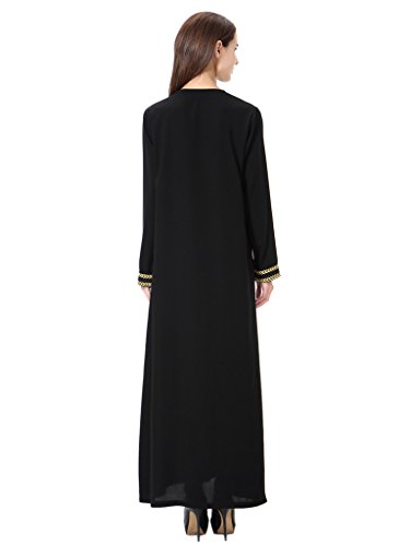 MEYINI Vestido Largo Musulmán para Mujer - Elegante Vestido de Fiesta de Manga Larga Bordado Árabe Abaya Ropa Islámica Péndulo Grande