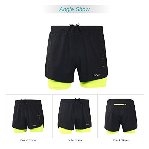 Lixada Hombres Pantalónes Cortos de Running 2-en-1, Pantalones Cortos de Atletismo, Pantalones Cortos de Fitness Maratón, Transpirable Pantalones+Secado Rápido (Verde, XL)