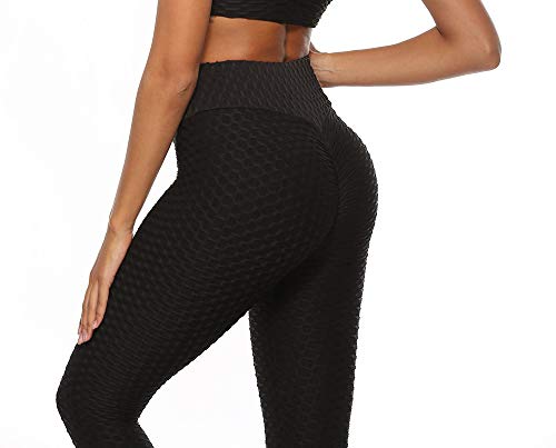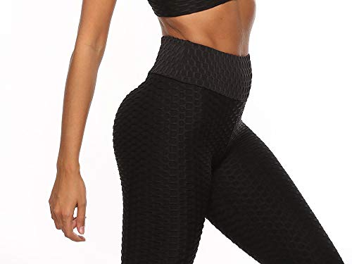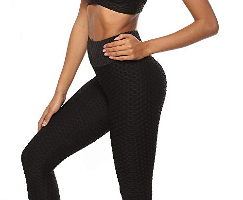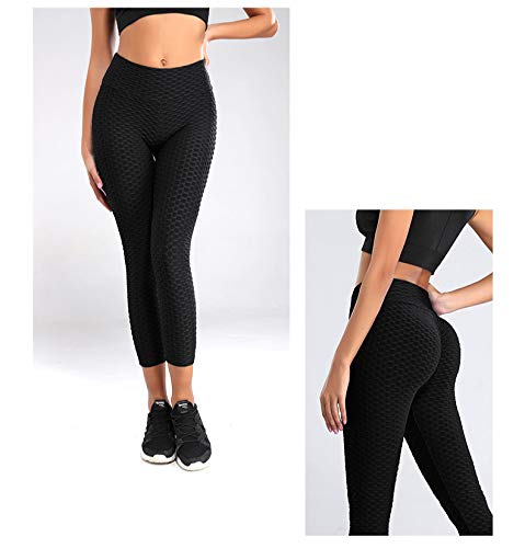 Memoryee Panal arrugado para nalgas de las mujeres leggings Levante los pantalones de yoga de cintura alta Elegante con gimnasio de control de la barriga/Black/S
