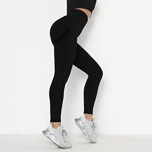 Voqeen Sexy Pantalones de Yoga de Punto Sin Costuras Mujeres Damas de Cintura Alta Leggings de Gimnasio Booty Scrunch Pantalones de Control de Barriga Gruesos Entrenamiento Correr Medias deportivas