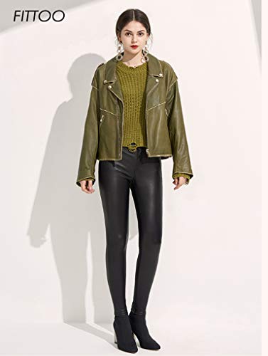 FITTOO PU Leggings Cuero Imitación Pantalón Elásticos Cintura Alta Push Up para Mujer #2 Clásico Negro Mate XS