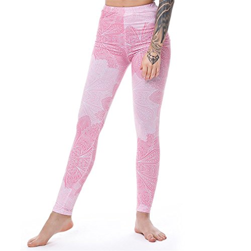 Bsrale Polainas Rosa para Mujeres Sexy Leggings para Fitness Flores Polaina de Cintura Alta Slim Leggins Mujeres Imprimir