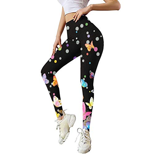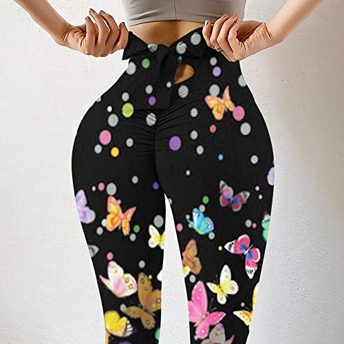 Junjie Mallas de Deporte de Mujer Yoga Cintura Alta ImpresióN De Flores Mariposa Leggins Deportivos Mujer Fitness Casuales Transpirables Mallas