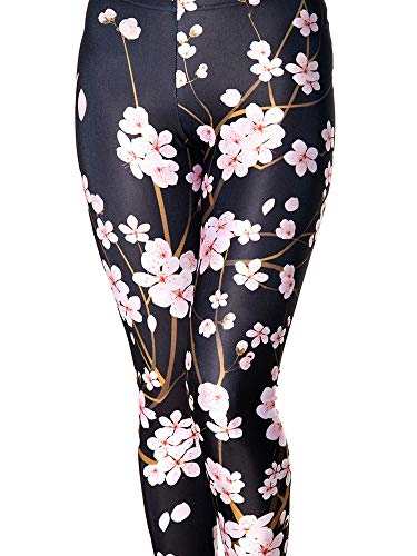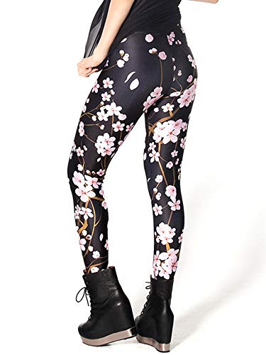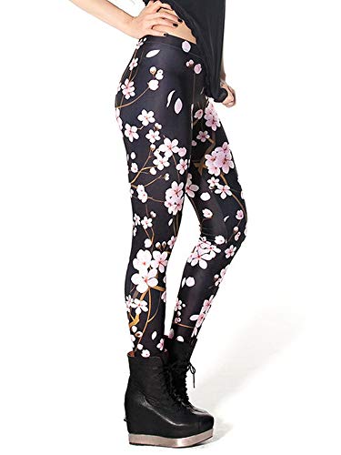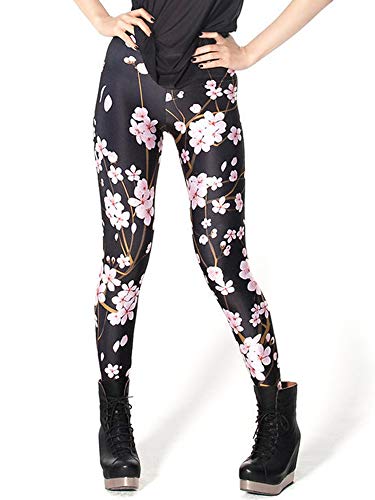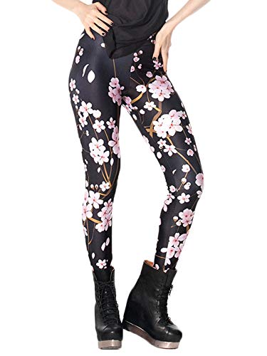 Nuofengkudu Mujer Estampados Leggins Largos Elasticos Talle Alto Lisos Fiesta Mallas Deporte Elegantes Hippie Transpirable Slim Fit Yoga Pantalones (Negro Flor De Ciruelo,Talla única)