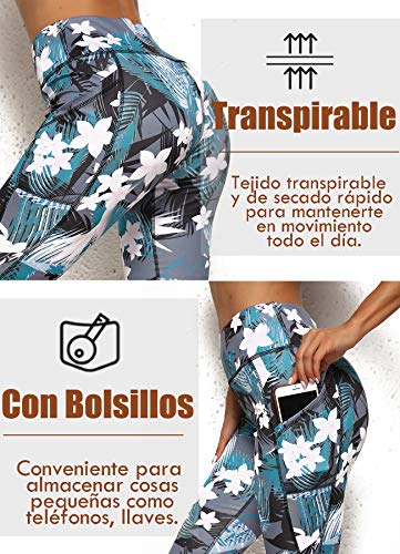 STARBILD Leggings 3/4 Mallas Pantalones de Alta Cintura Elástica Súper Transpirable Adelgazante de Yoga Deportivas Leggins para Mujer Flor-3 S