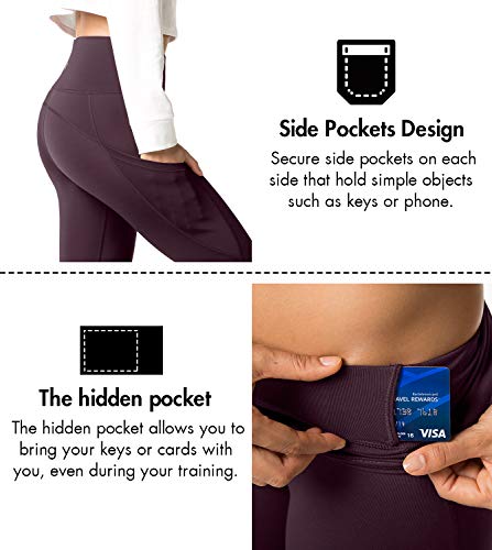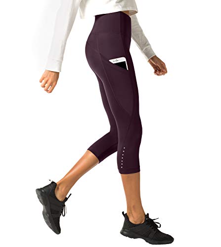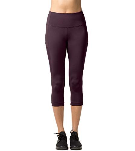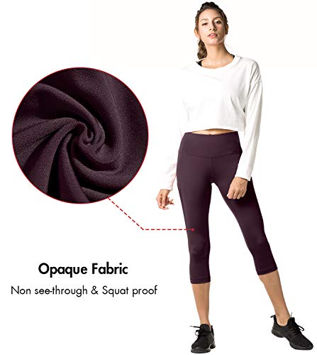 LAPASA Mallas Deportivas 3/4 Capris de Mujer Cintura Alta con Bolsillo (Leggings para Yoga, Pilates, Running) L02 (XS/34 (Cintura 58-66, Cadera 74-82 cm), Burdeo Oscuro II (Bolsillo Lateral))
