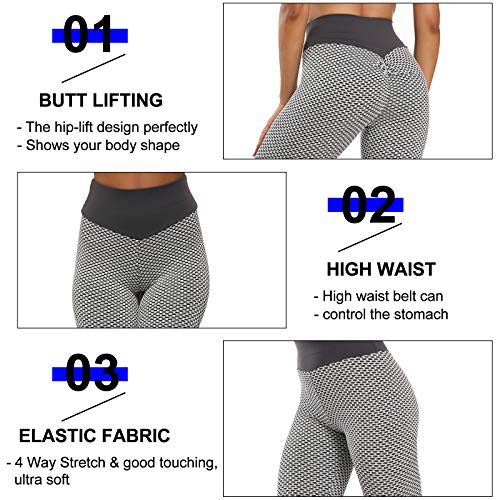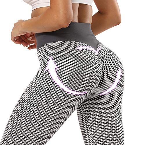 FITTOO Leggings Push Up Mujer Mallas Pantalones Deportivos Alta Cintura Elásticos Yoga Fitness Gris XS