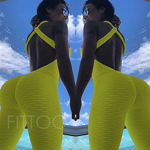 FITTOO Mallas Pantalones Deportivos Leggings Mujer Yoga de Alta Cintura Elásticos y Transpirables para Yoga Running Fitness con Gran Elásticos1370 Amarillo S