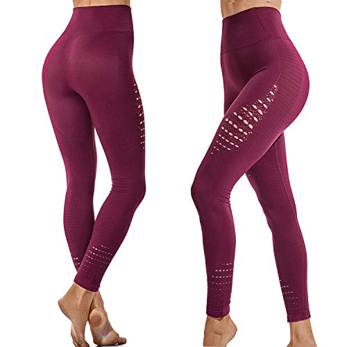 FITTOO Leggings Sin Costuras Corte de Malla Mujer Pantalon Deportivo Alta Cintura Yoga Elásticos Fitness Seamless #1 Rojo Large