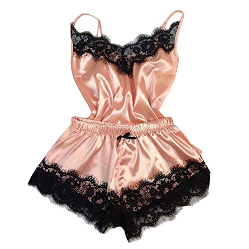 UMIPUBO Conjunto de lencería Mujer Verano Corto Sin Mangas Pijama de Encaje Ropa de Dormir Babydoll Ropa Interior camisón