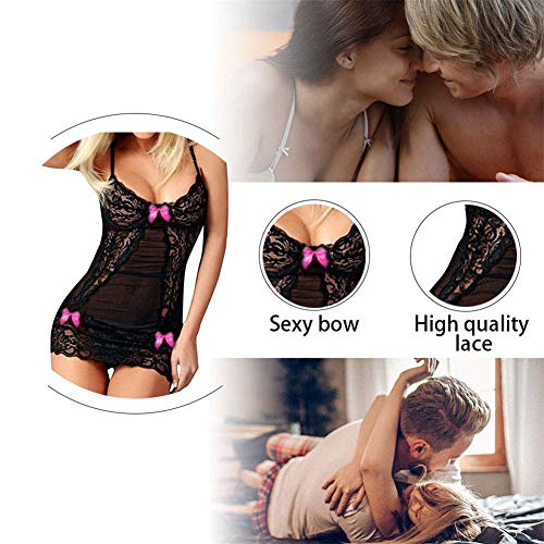 - ?Confeccionada en elegante encaje floral y malla transpirable de alta calidad. El encaje ultra suave y elástico es ropa de dormir cómoda para que la mujer la use. Sexy y romance en este conjunto de vestido de lencería de muñeca bebé.