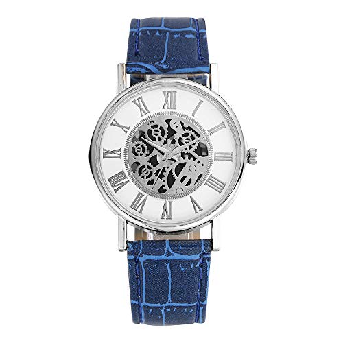 B/H Minimalista Casual Reloj de Pulsera Pequeño,Reloj de Hombre con cinturón Hueco-Plata + Azul,Cuarzo Resistente al Agua Minimalista Relojes