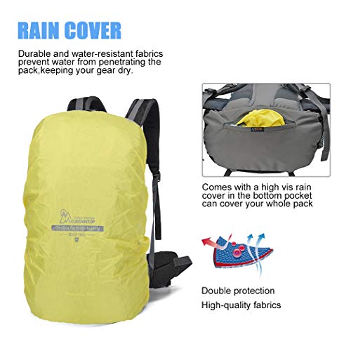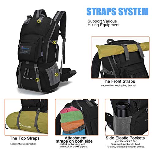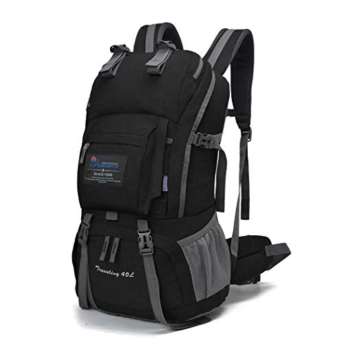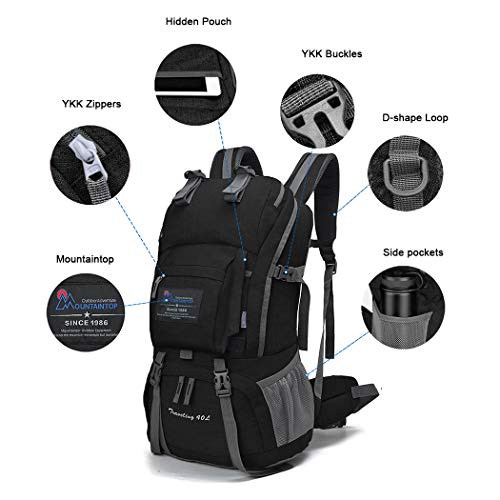 MOUNTAINTOP 40 litros Mochila de Senderismo, Impermeable Mochila Trekking al Aire Libre Mochilas de Montaña Viajes Acampadas con Cubierta de Lluvia (Estampado Negro Y Azul)