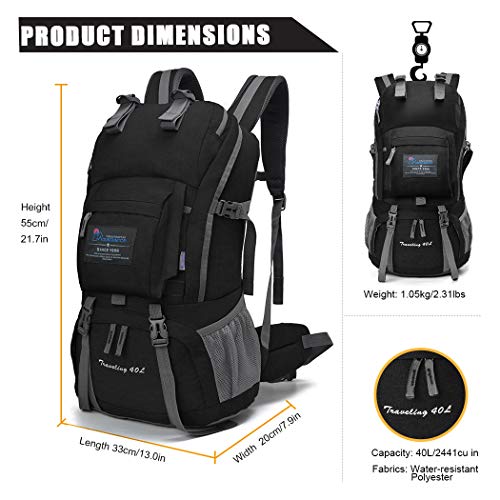 - 【Gran capacidad】El tamaño de la mochila es de 35 x 25 x 55 cm(40L), que es suficiente para satisfacer todas sus necesidades. El gran bolsillo principal y los múltiples bolsillos le permiten almacenar sus elementos esenciales tales como el compartimento integrado para laptop de 15.6 pulgadas, 2 bolsillos frontales con cremallera, 1 bolsillo antirrobo, 1 bolsillo en la parte inferior, 2 bolsillos laterales, puede almacenar todo lo que necesite para viajes de 3-4 días.