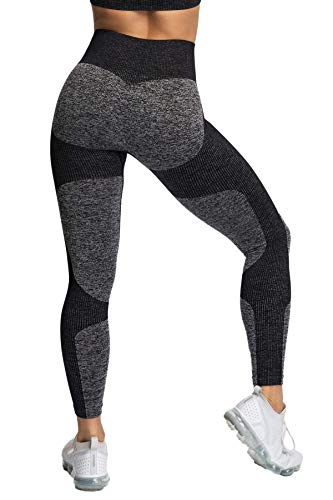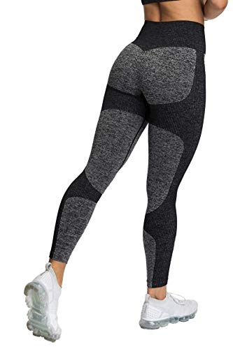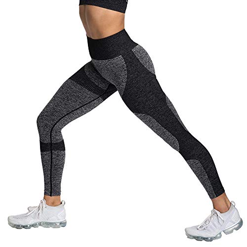 Pau1Hami1ton Sin Costura Leggins Mujer, Mallas Fitness Push Up Pantalones Deporte Running Yoga GP-15(Black,S)