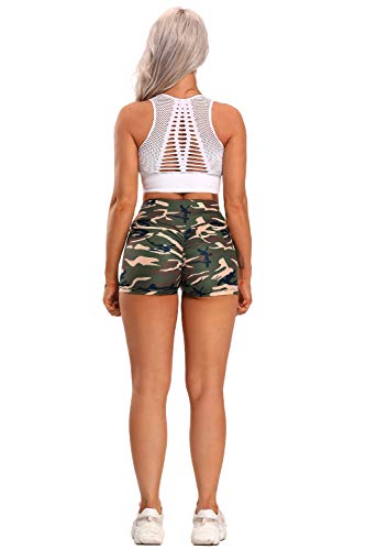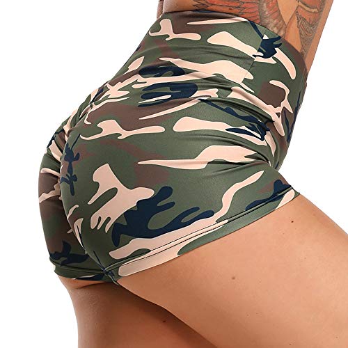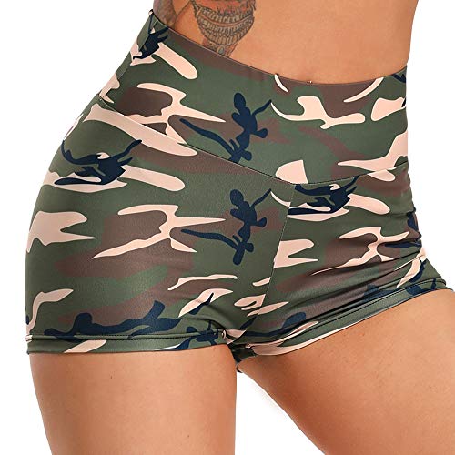 STARBILD Shorts Pantalones Deportes Cortos de Fitness Mallas para Mujer Elástico de Alta Cintura para Correr Gimnasio Gym #4 Pattern Classic-Camuflaje L
