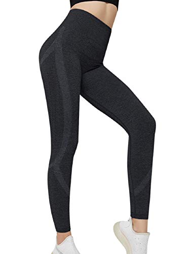 Gimdumasa Pantalón Deportivo de Mujer Cintura Alta Leggings Mallas para Running Training Fitness Estiramiento Yoga y Pilates GI188 (Negro, L)