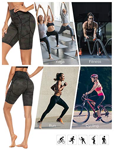 Sykooria Pantalones Cortos de Yoga para Mujer Leggings Deportivo con Bolsillos Mallas Cortas de Compresión para Running Casuales Fitness
