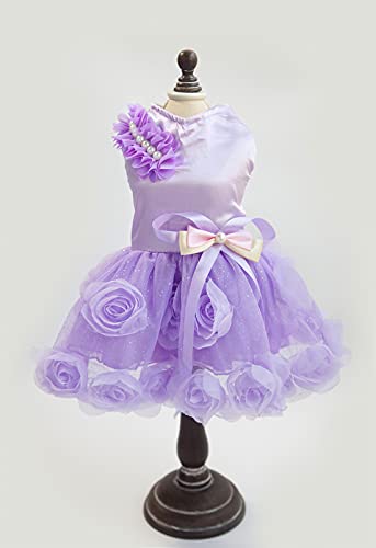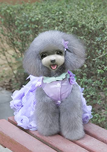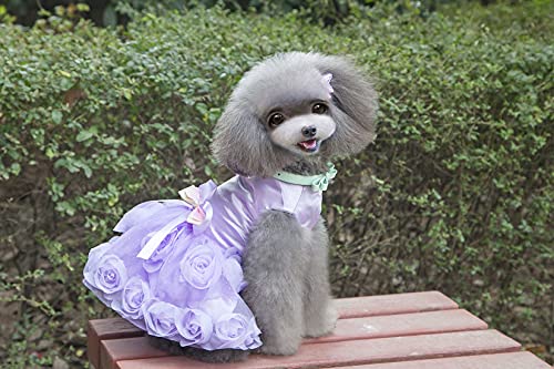 - Característica: vestido de falda princesa del perro hermoso, vestido de malla perro, decorada hombros y el diseño de flores en tres dimensiones de los espectáculos de vestir para perros de su mascota encantadora. dobladillo de la falda de princesa está hecha de tul transpirable al desgaste en primavera y verano