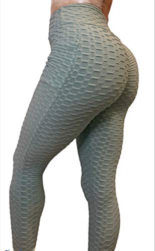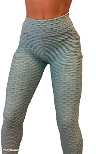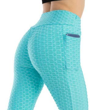 Push Up Leggings para Mujer con Bolsillo, Leggins Mujer Deporte con Bolsillo Alta Mujer Malla Celular Pantalón de Yoga Leggings, Anti-Celulitis Deportivos para Yoga Pilates Fitness (Azul Cielo, S)