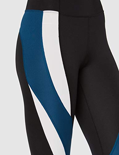 Marca Amazon - AURIQUE Mallas de Deporte Combinadas con Tiro Alto Mujer, Negro (Black/Gibraltar Sea/White), 40, Label:M