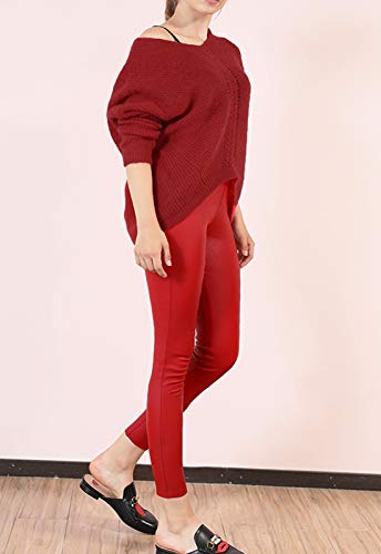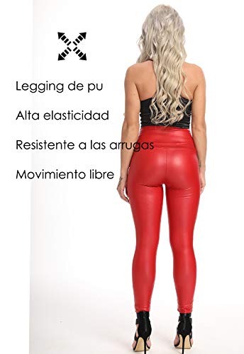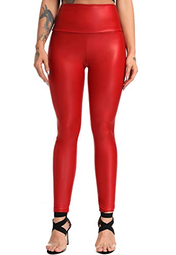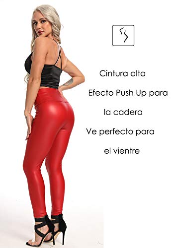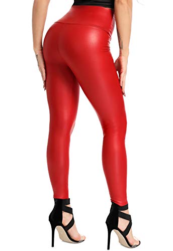 FITTOO PU Leggings Cuero Imitación Pantalón Elásticos Cintura Alta Push Up para Mujer #2 Clásico Rojo XS