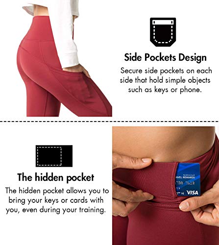 LAPASA Mallas Deportivas 3/4 Capris de Mujer Cintura Alta (Leggings para Yoga, Pilates, Running) L02 (L/40-41 (Cintura 81-89, Cadera 96-103 cm), Rojo Oscuro II (Bolsillo Lateral))